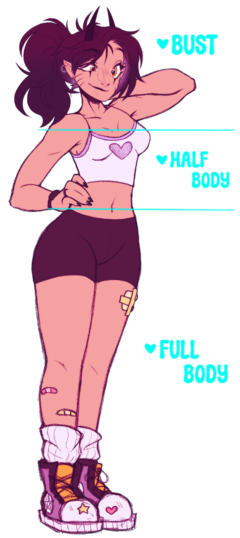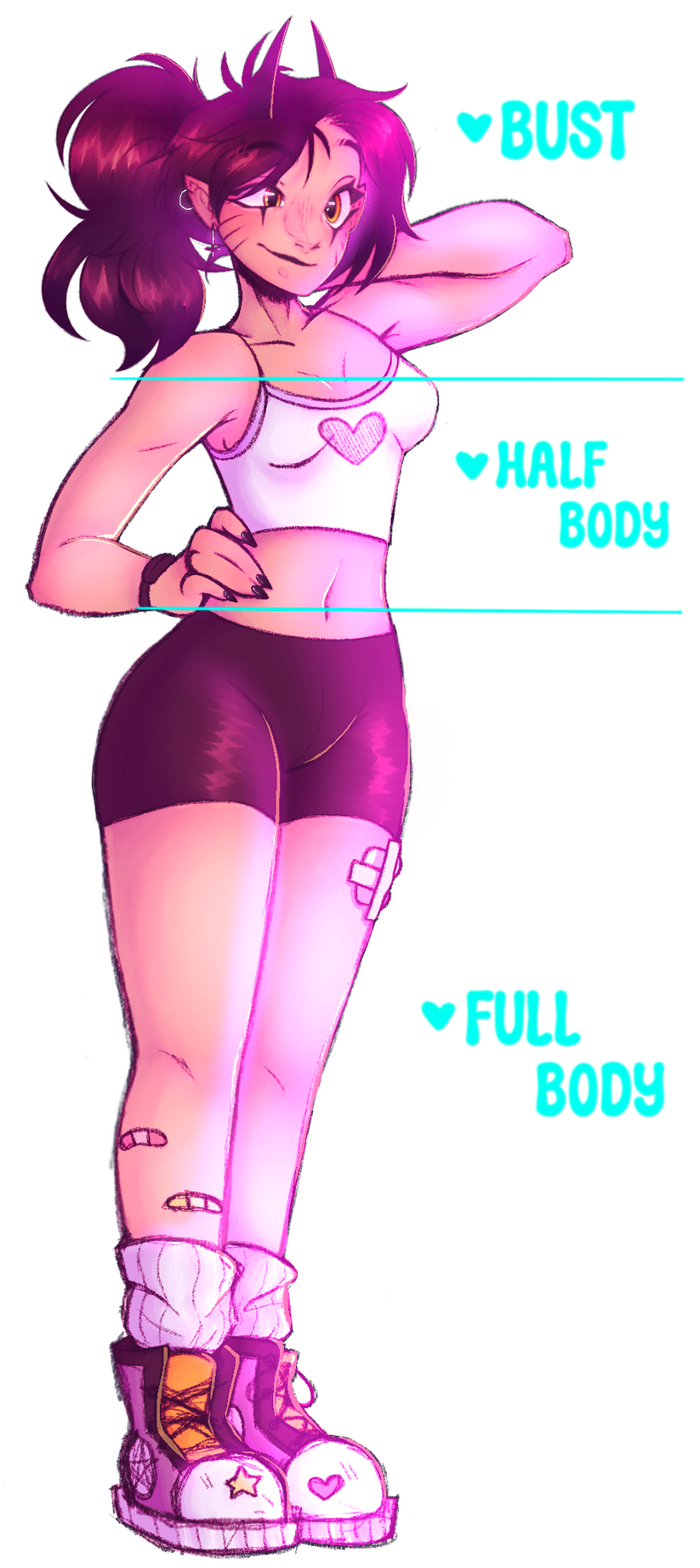 - BE PATIENT!!! My life outside being online is very busy and I don't always have access to my PC. If you want your commission to look GREAT, please give me time to finish your commission! I promise I won't forget about you!- Complex and Custom Backgrounds will cost extra depending on complexity. Custom BGs will start at $10 and go up from there !- I take Zelle and CashApp only !!!- Commissioner will pay 1/2 their total up front and the second half when the piece is done. HD piece with no watermark will be given after second payment has gone through to me :)) Paying 100% upfront cancels out all of the above, sketch will be shown first and piece will be continued after approval and HD, non-watermark piece will be given immediately when finished.- Adding multiple characters will be like purchasing multiple one character commissions. Ex. 2 full body shaded characters would be $120+.- NO REFUNDS! idk if this is even needed C: